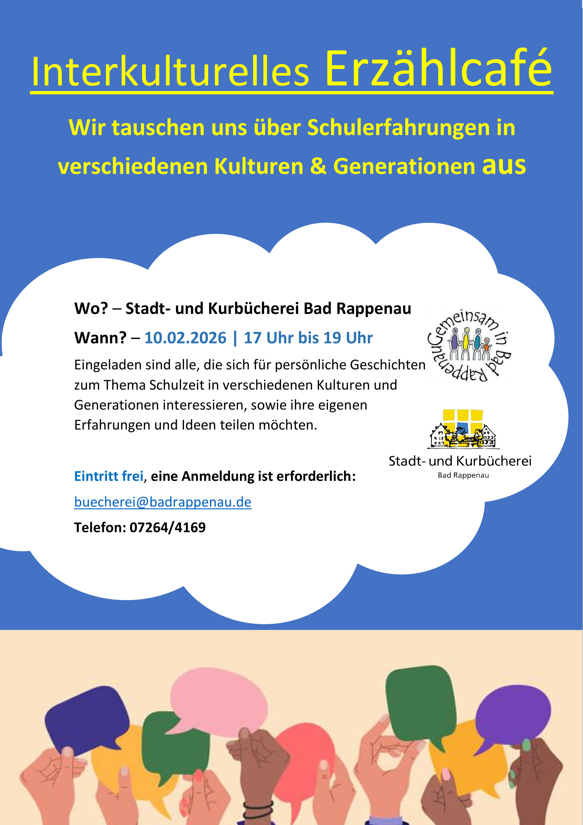 Der Eintritt ist frei. Wir bitten um Anmeldung per Mail an buecherei@badrappenau.de oder telefonisch unter 07264/4169.